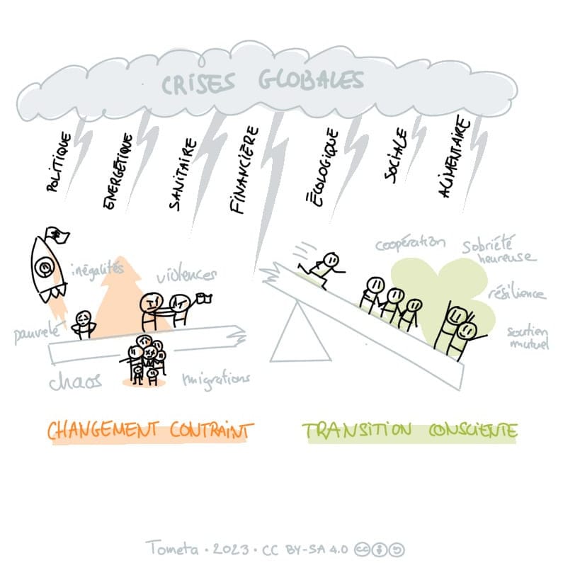 Quand on considère les limites planétaires certains pensent que l'équilibre actuel va s'effondrer à cause des multiples crises. La transition risque alors d'être consciente ou contrainte...