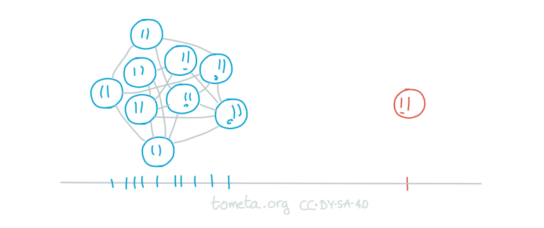 Sometimes, there is an individual who interacts differently which creates a distance with the group — let's call this person an outlier. Think of a newcomer who doesn't know the group's habits, or someone from a different culture or generation or abilities making them not having the same communication and interaction styles as the rest of the group.