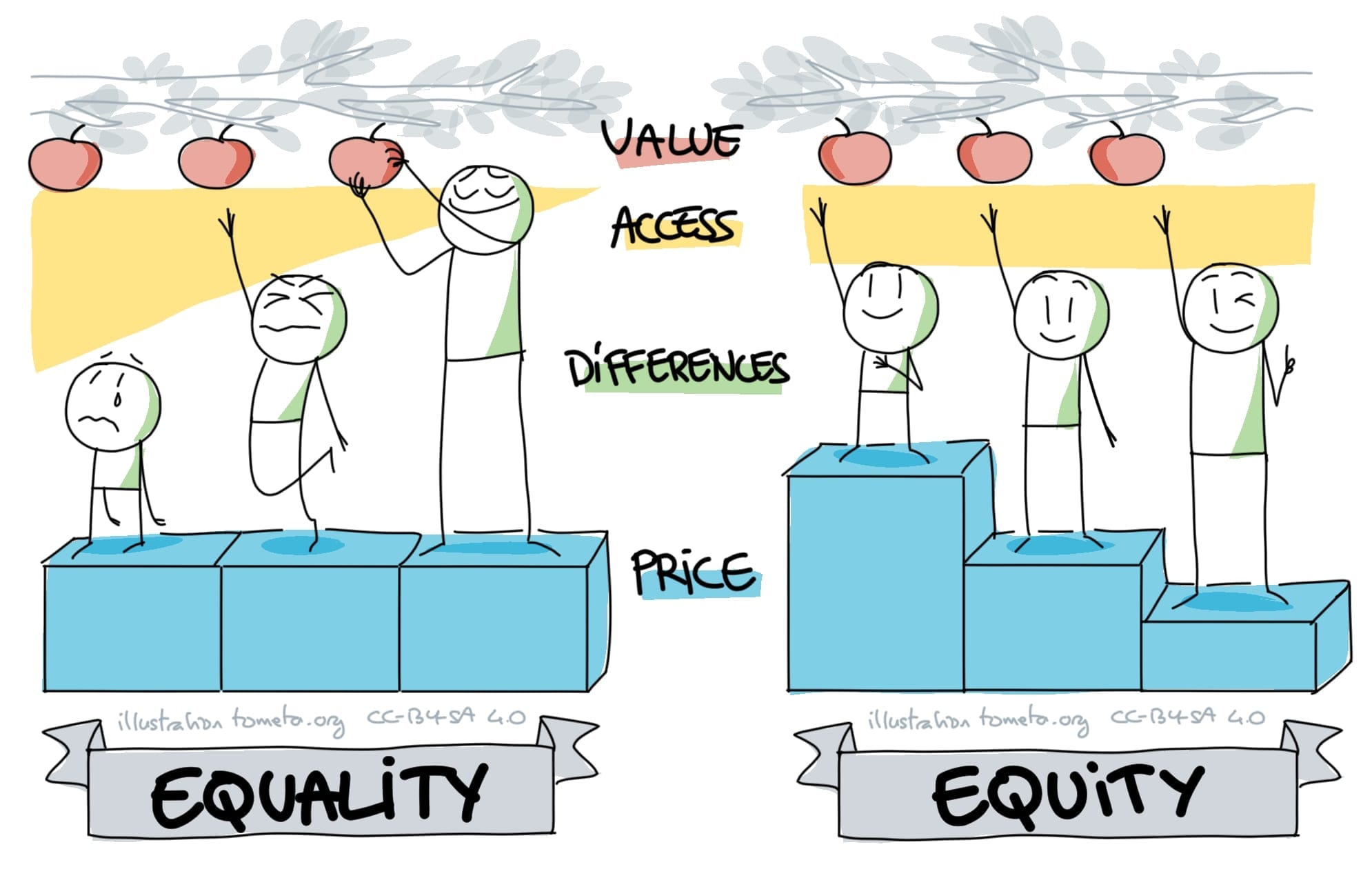 Un modèle de tarification équitable cherche au contraire à offrir un accès similaire pour tou·te·s, en égalisant le pourcentage de revenu plutôt que le montant absolu payé.
